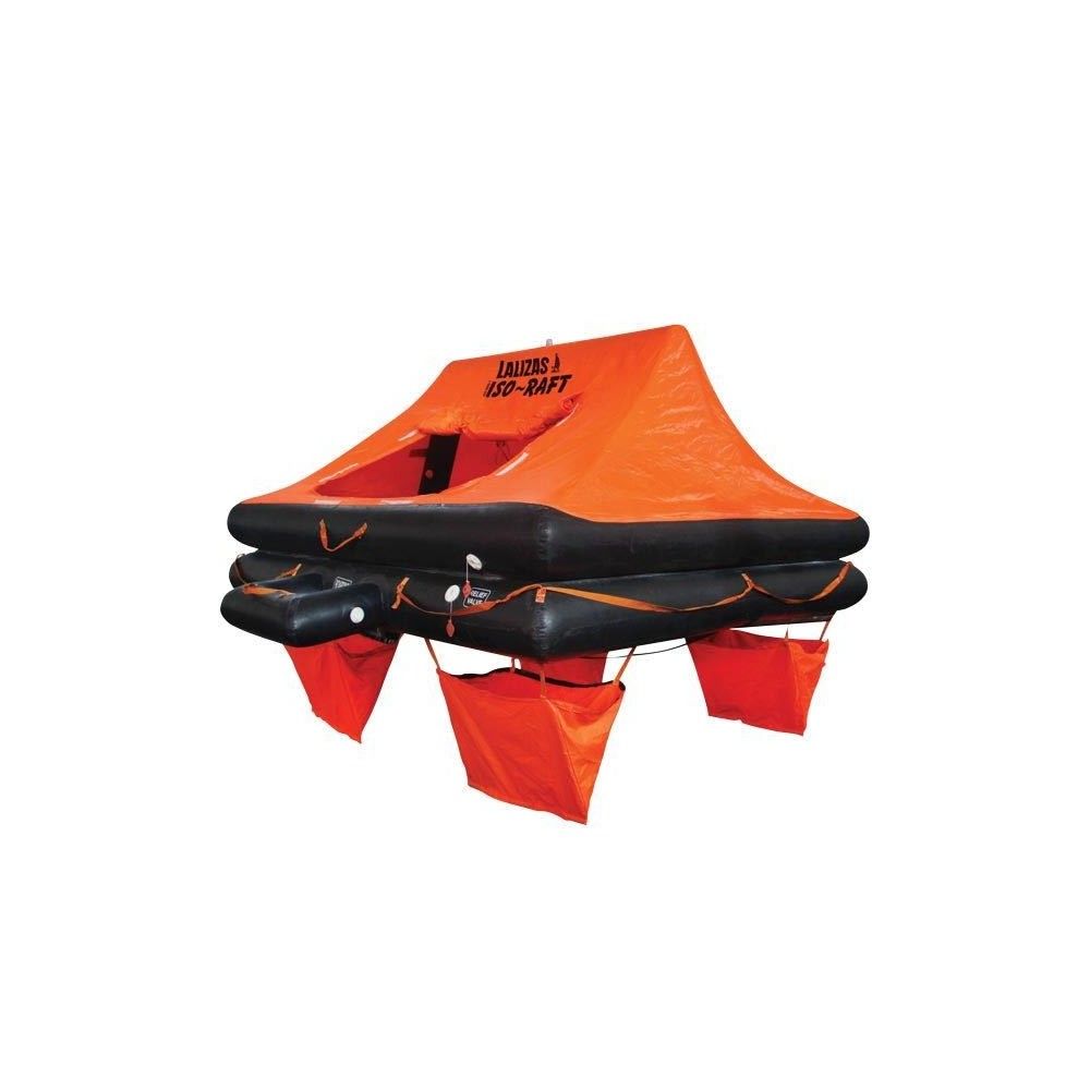 Beskrivelse Lalizas ISO redningsflåder fås fra 4 til 12 personer og er med termisk isolerende gulv og designet til ekstreme forhold. ISO flåderne har 2 individuelle oppustelige pontoner af naturgummi med et fluorescerende orange automatisk oppusteligt tag med reflekterende tape, udkigsvindue, ventilationsvindue, vandopsamler og en oppustelig rampe for let ombordstigning i flåden. Redningsflåden er vakuumpakket for større beskyttelse og fås enten i kraftig og robust glasfiber container eller vandtæt taske. Pakkes flåden med en CR-medicin kiste, kan den anvendes til fiskefartøjer under 12 meter. 12 års garanti, hvis de 3 års service interval bliver overholdt - dog skal fiskefartøjer under 12 meter have flåden til service hvert 2. år. Funktionsdygtig -15˚C til +65˚C og maksimum monteringshøjde 6 meter fra havoverfladen.