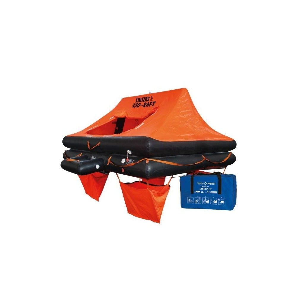 Beskrivelse Lalizas ISO redningsflåder fås fra 4 til 12 personer og er med termisk isolerende gulv og designet til ekstreme forhold. ISO flåderne har 2 individuelle oppustelige pontoner af naturgummi med et fluorescerende orange automatisk oppusteligt tag med reflekterende tape, udkigsvindue, ventilationsvindue, vandopsamler og en oppustelig rampe for let ombordstigning i flåden. Redningsflåden er vakuumpakket for større beskyttelse og fås enten i kraftig og robust glasfiber container eller vandtæt taske. Pakkes flåden med en CR-medicin kiste, kan den anvendes til fiskefartøjer under 12 meter. ( medicinen skal pakkes i redningsflåden af certificeret forhandler ) 12 års garanti, hvis de 3 års service interval bliver overholdt - dog skal fiskefartøjer under 12 meter have flåden til service hvert 2. år. Funktionsdygtig -15˚C til +65˚C og maksimum monteringshøjde 6 meter fra havoverfladen.