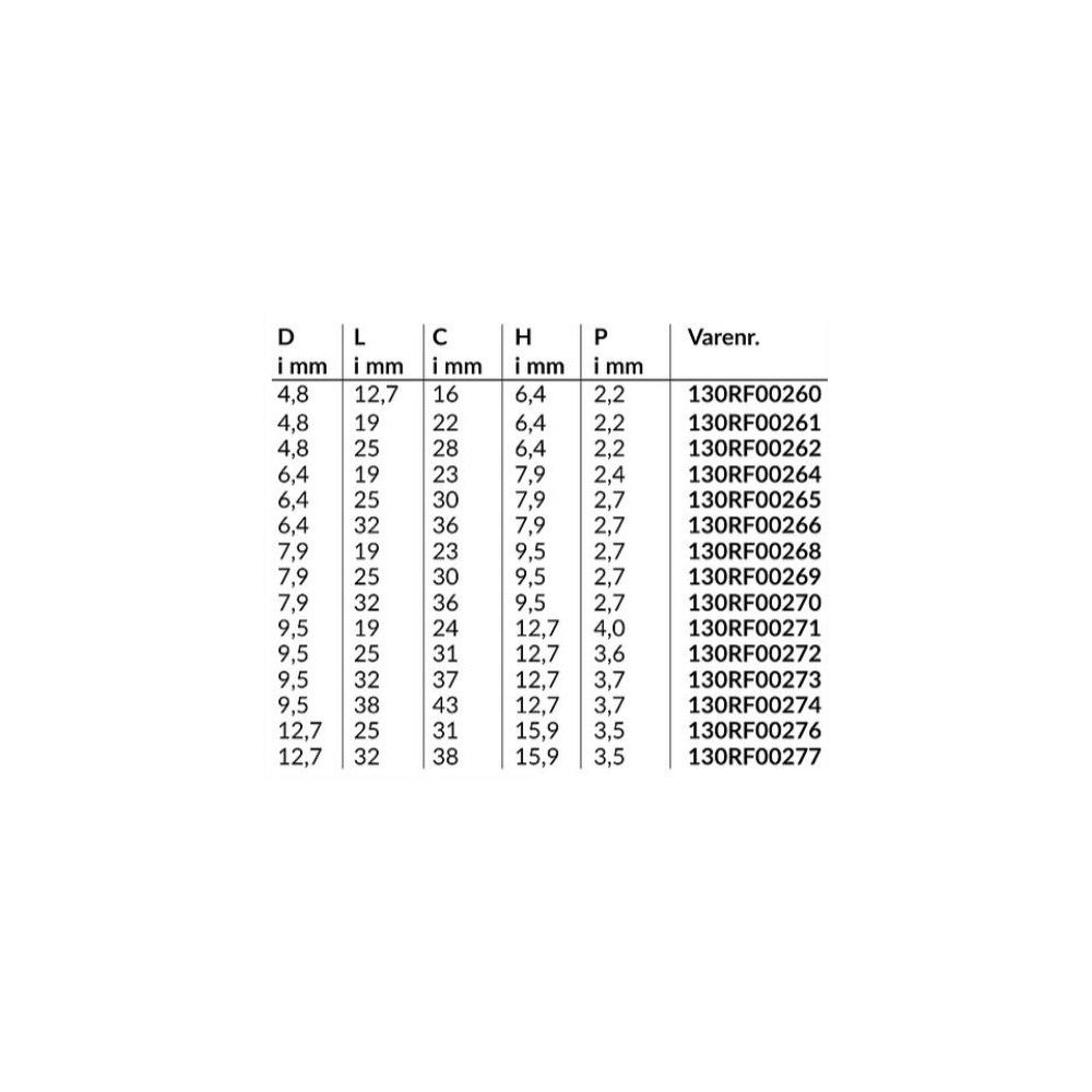 Tjek de forskellige mål ud i skemaet på billede 2.
